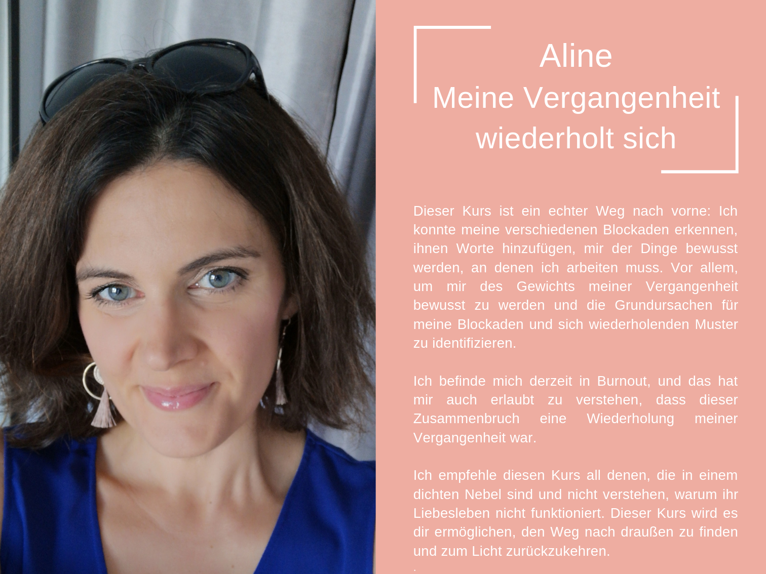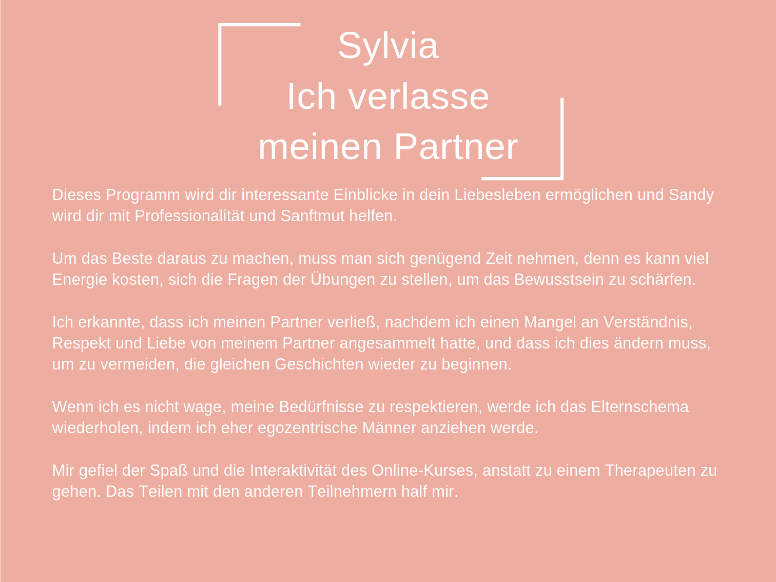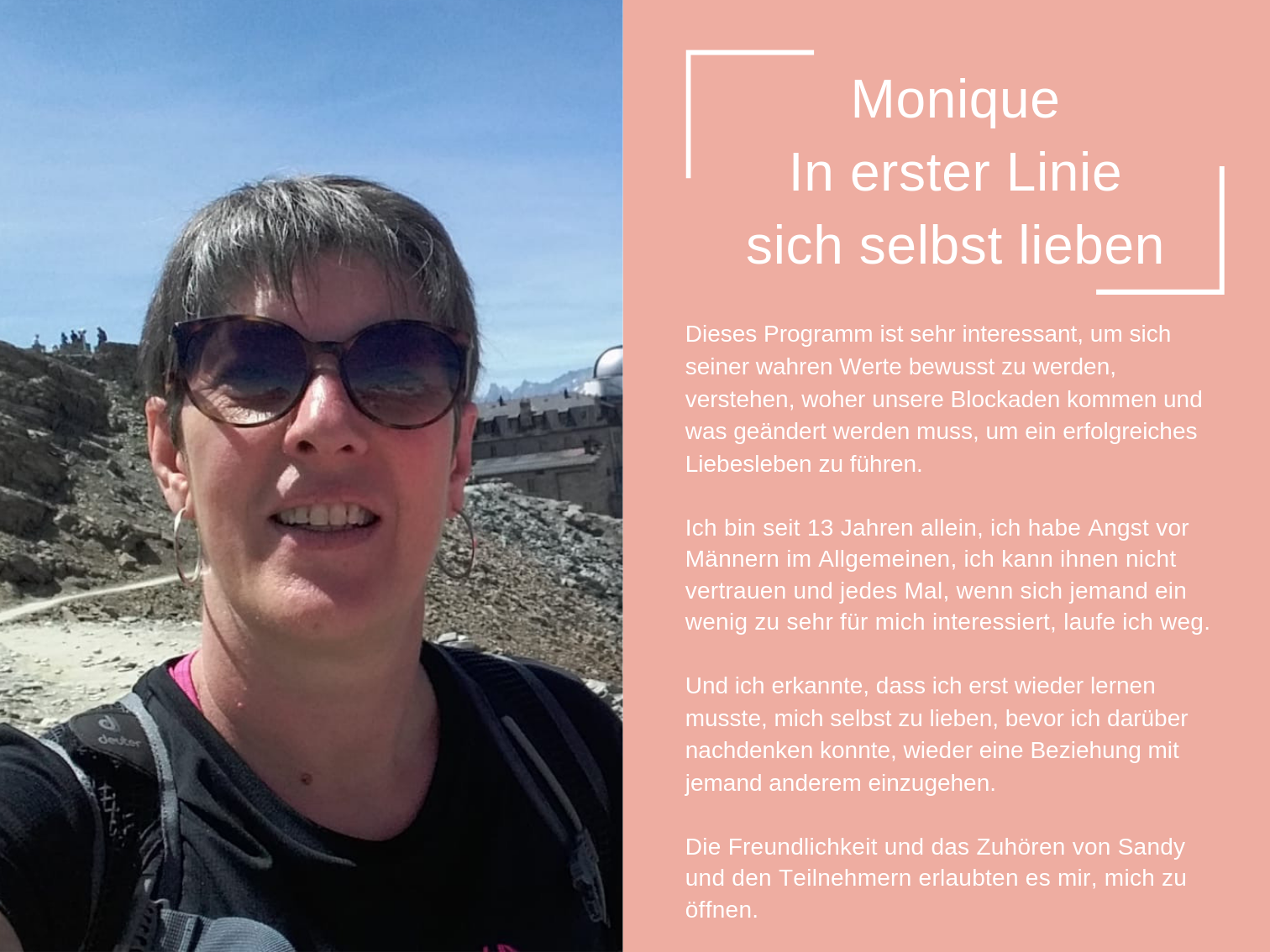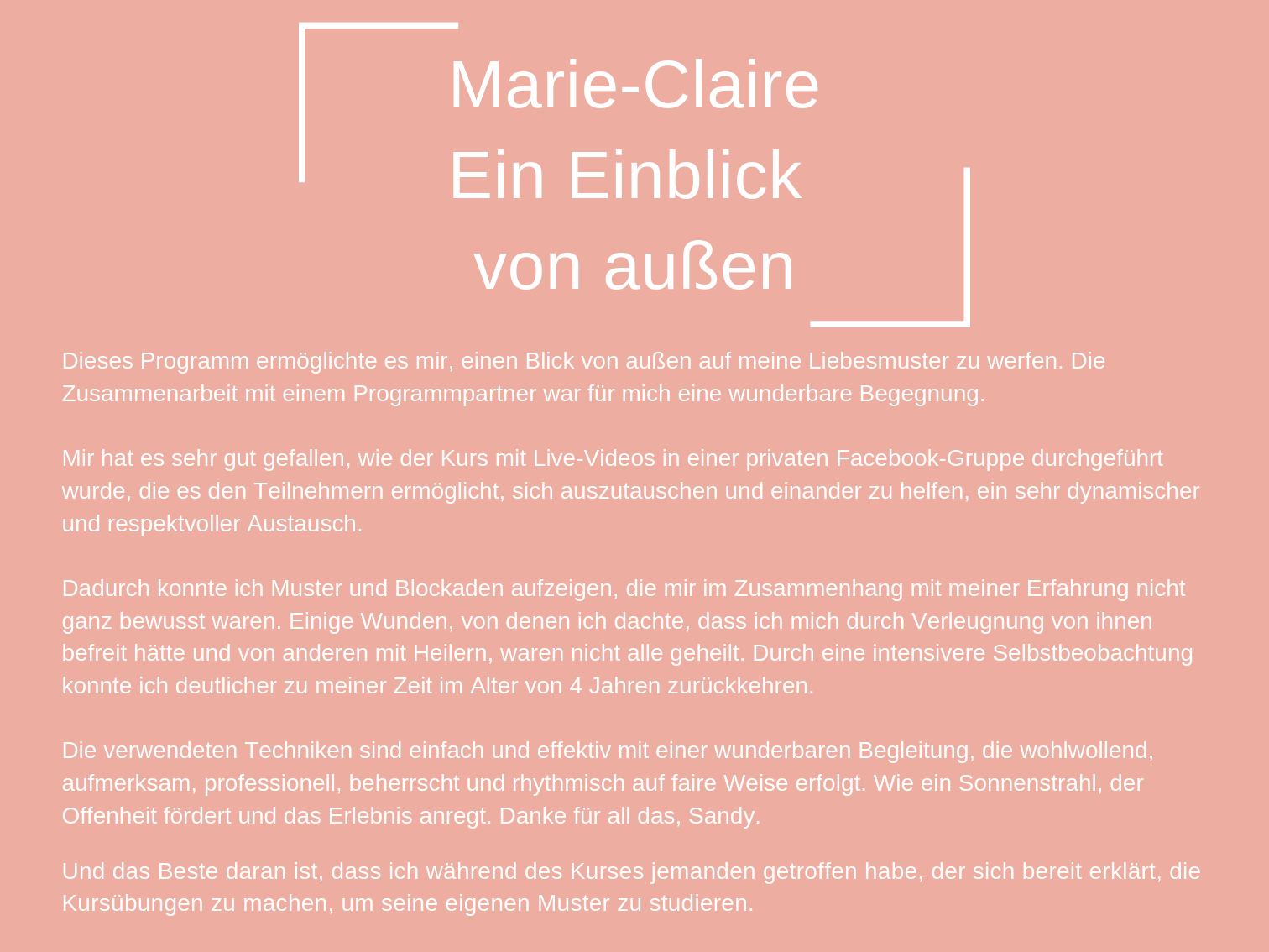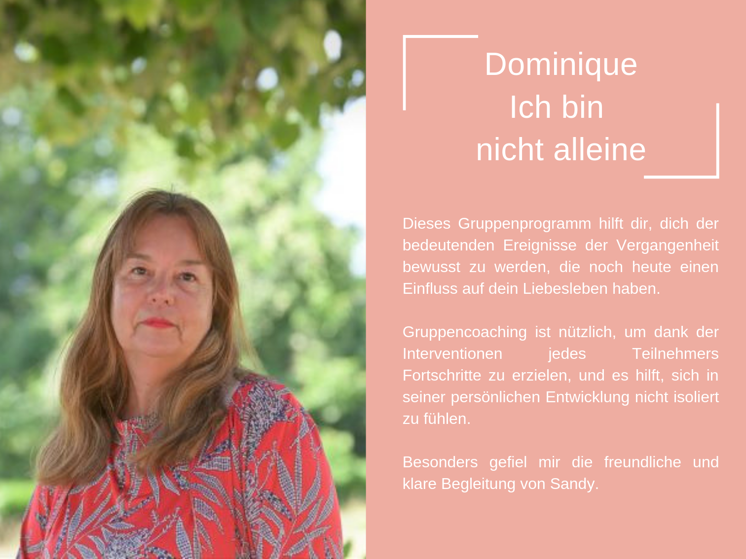 Das Coaching, das ich heute anbiete, besteht aus all den Werkzeugen, die mir persönlich geholfen haben, mich selbst zu heilen und in der Liebe glücklich zu sein.