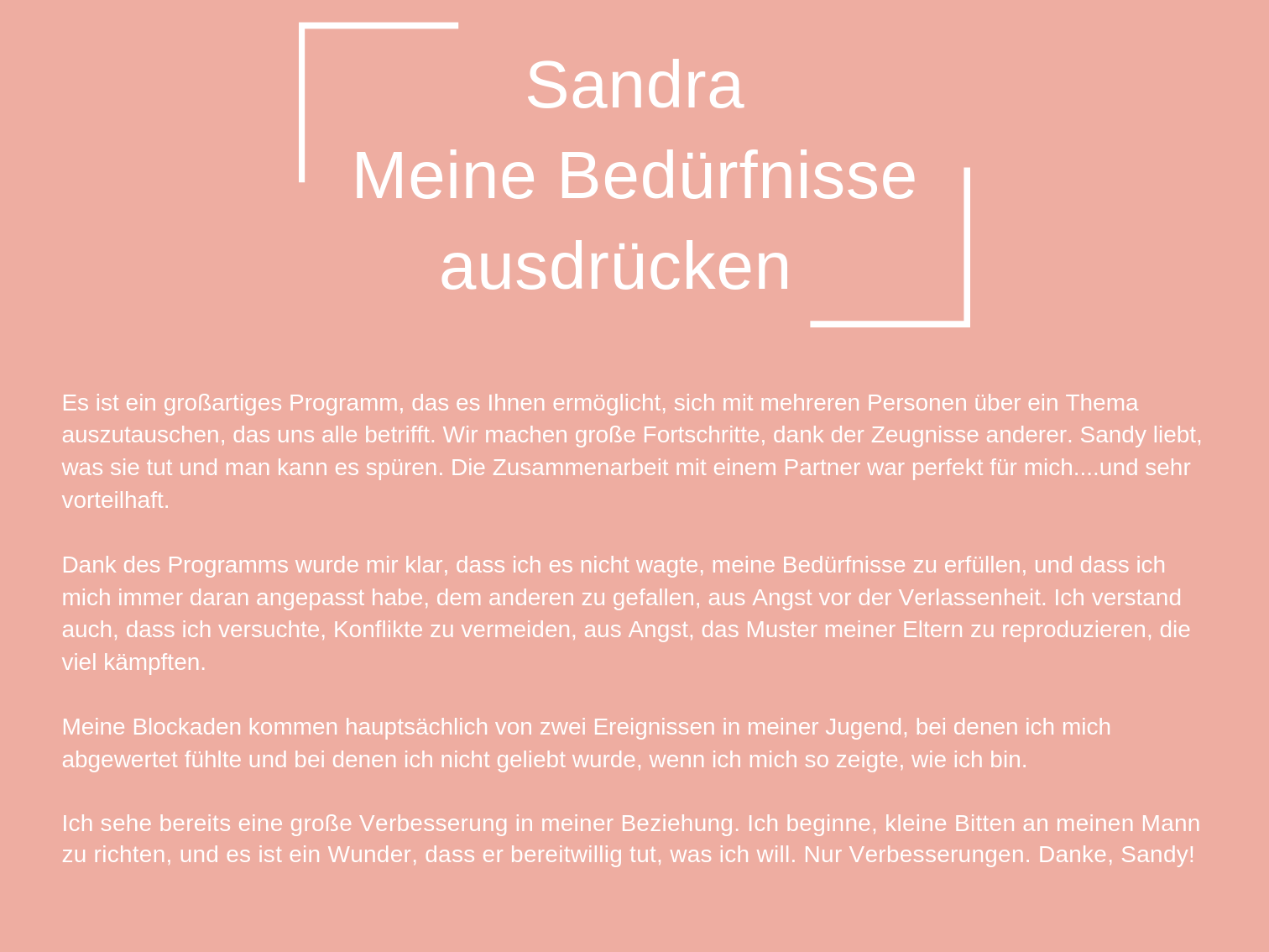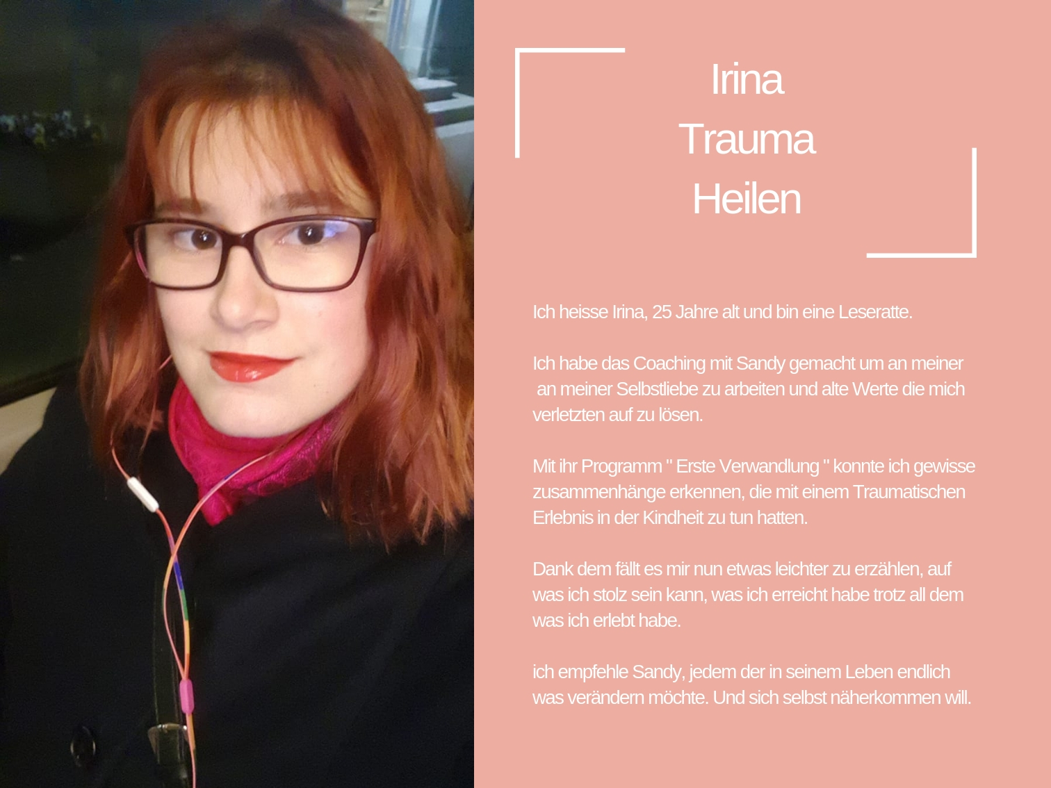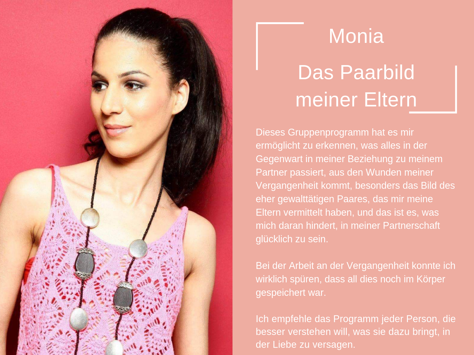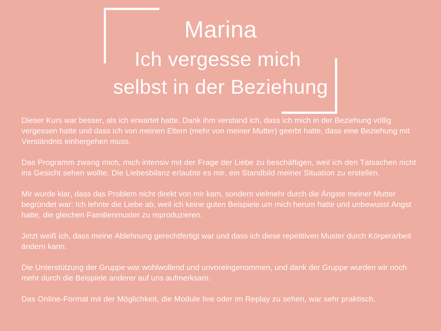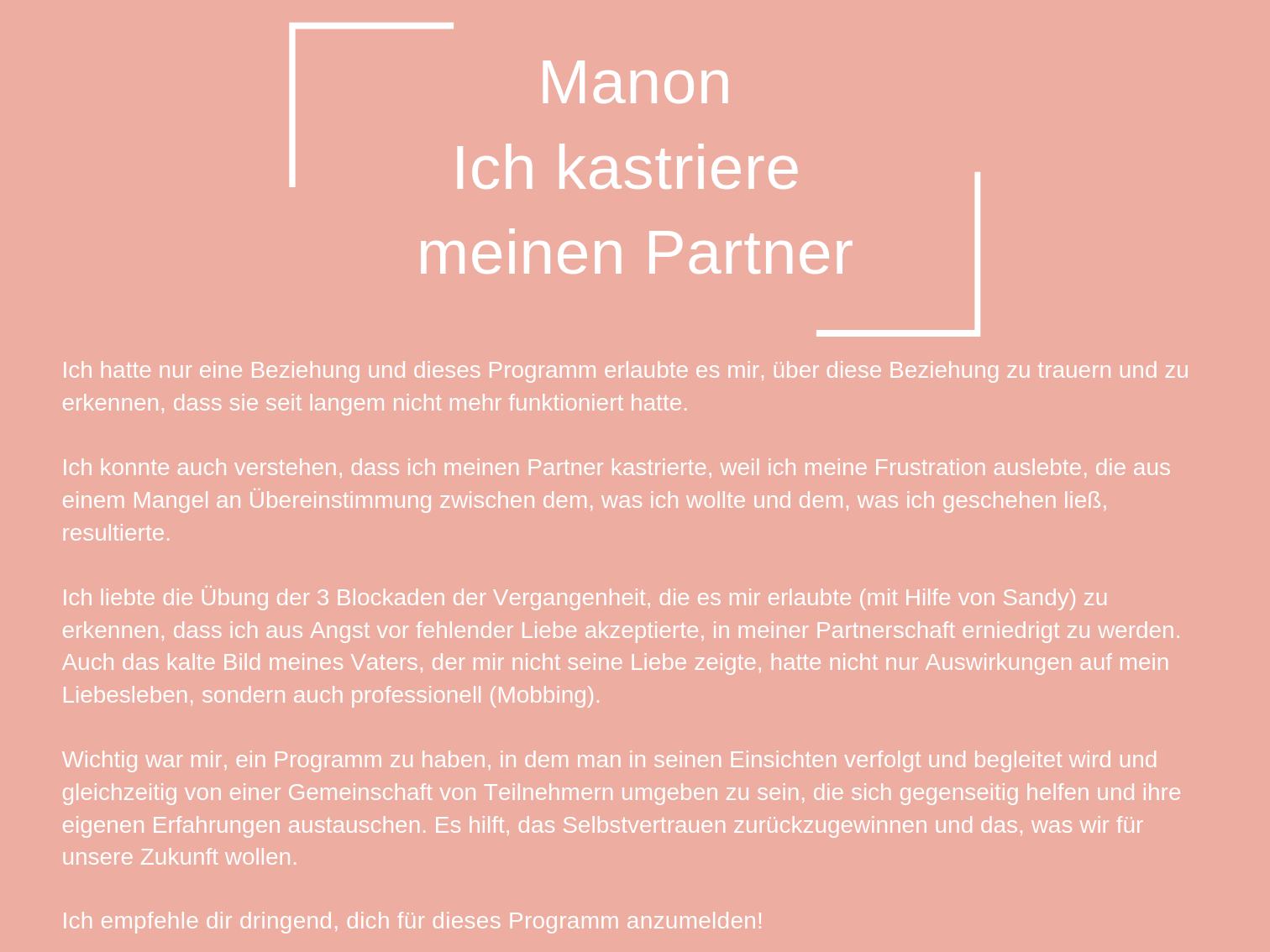 Das Coaching, das ich heute anbiete, besteht aus all den Werkzeugen, die mir persönlich geholfen haben, mich selbst zu heilen und in der Liebe glücklich zu sein.