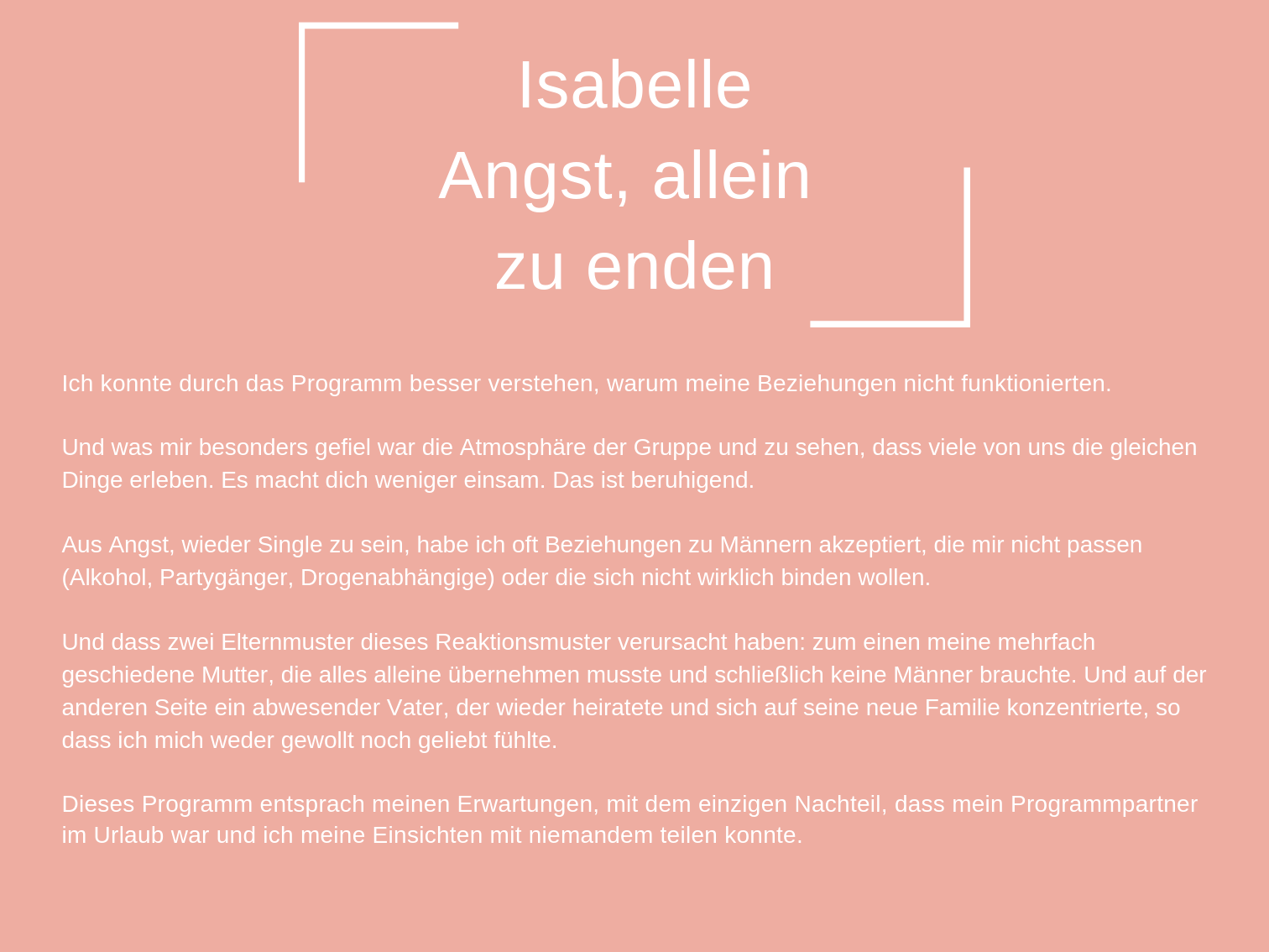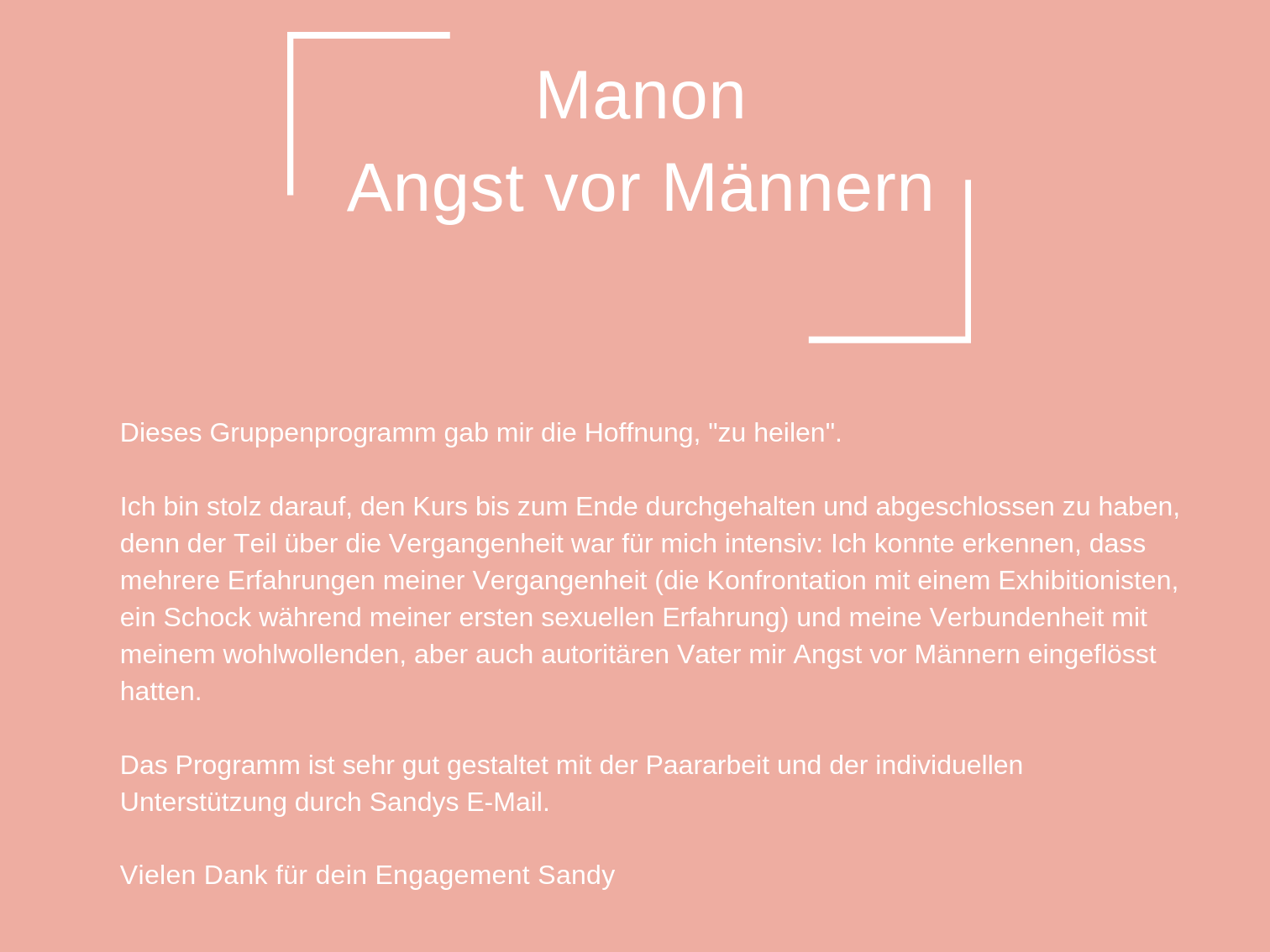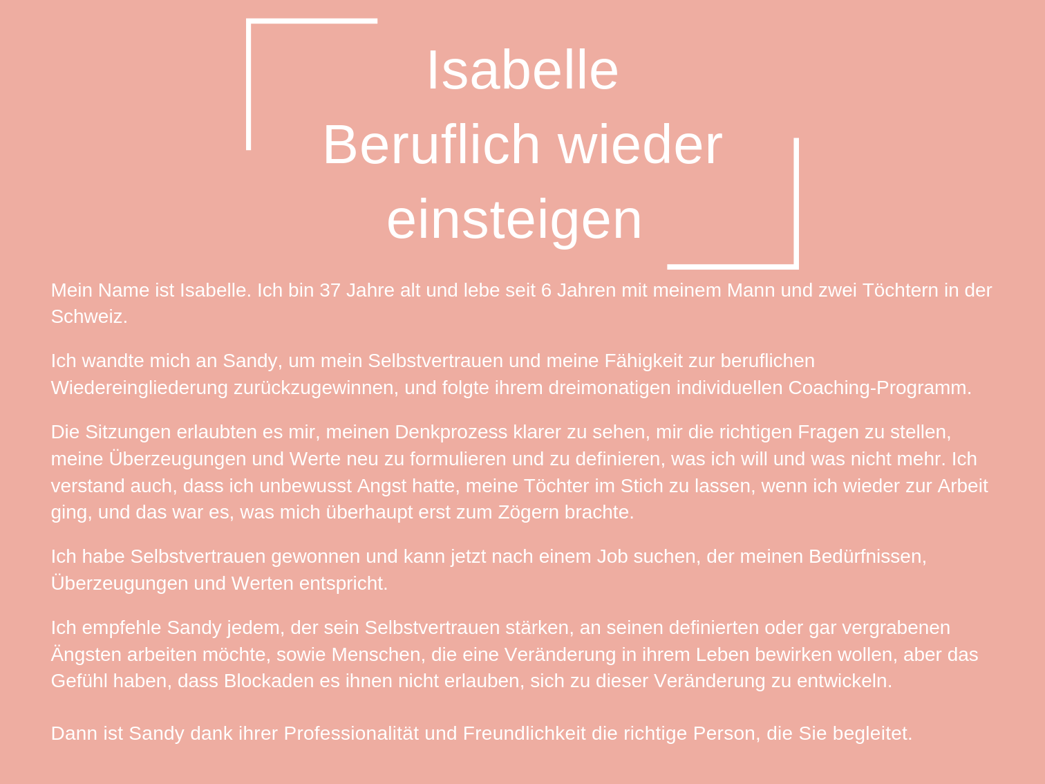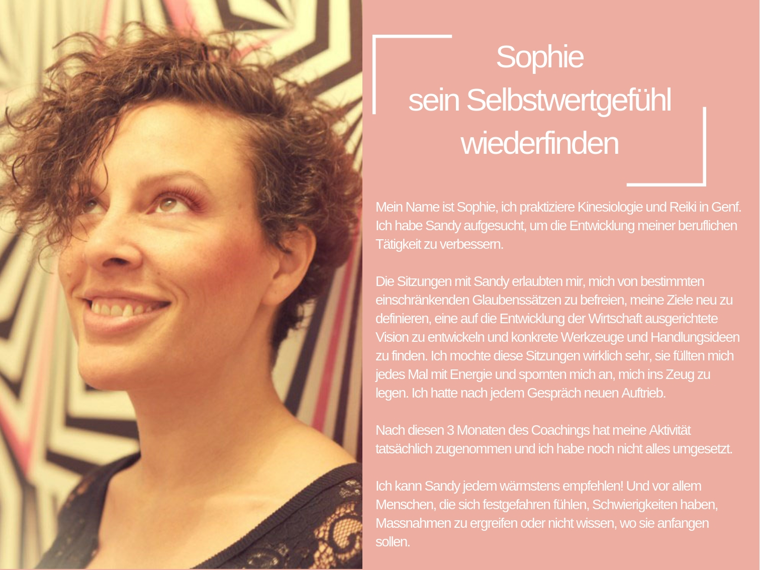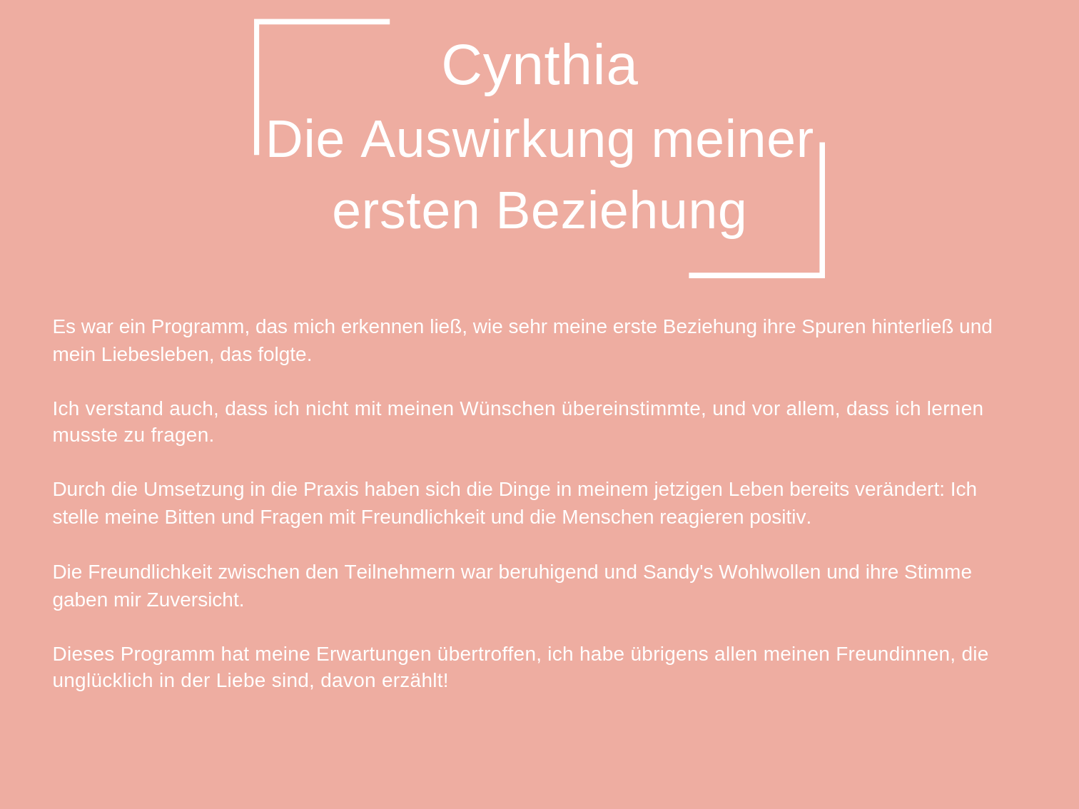 Das Coaching, das ich heute anbiete, besteht aus all den Werkzeugen, die mir persönlich geholfen haben, mich selbst zu heilen und in der Liebe glücklich zu sein.