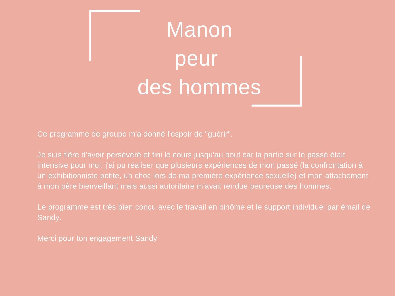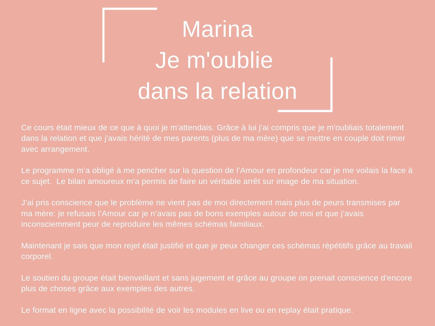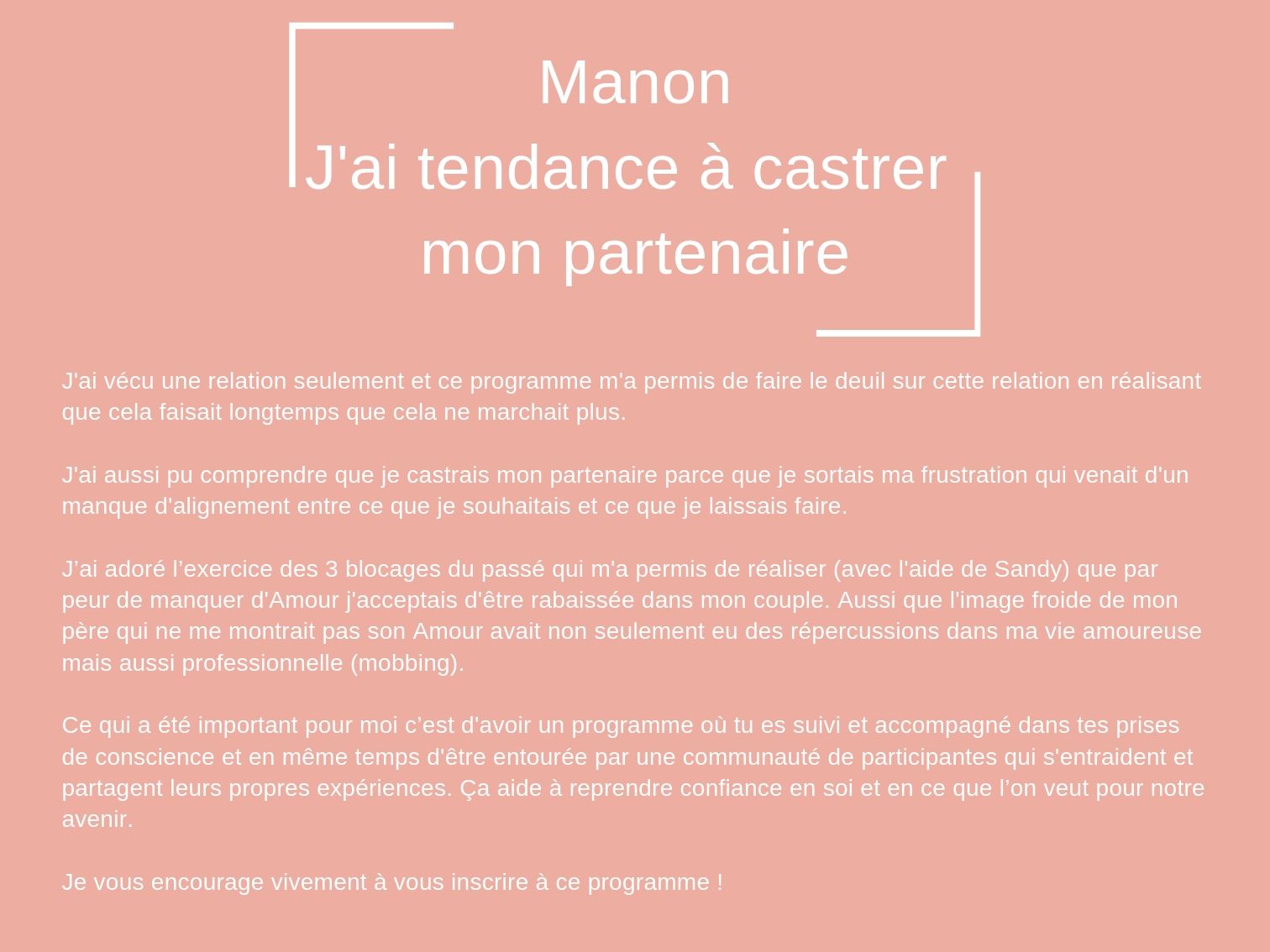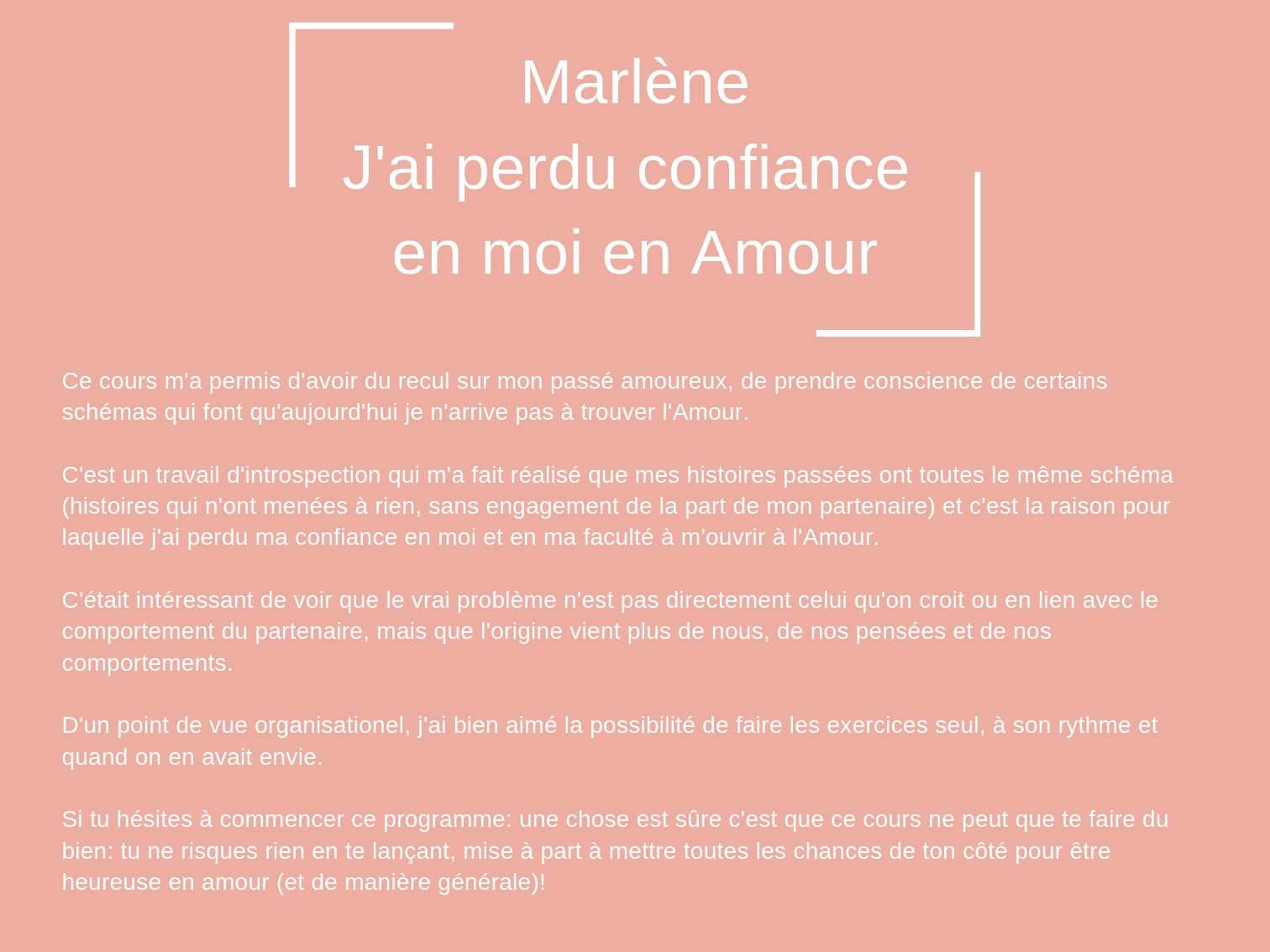 - À reprendre confiance en toi, à prendre conscience de ta valeur, à te réconcilier avec ton féminin et le pouvoir d’être une femme.