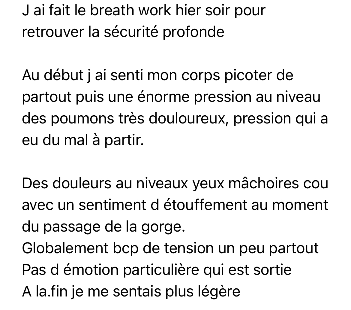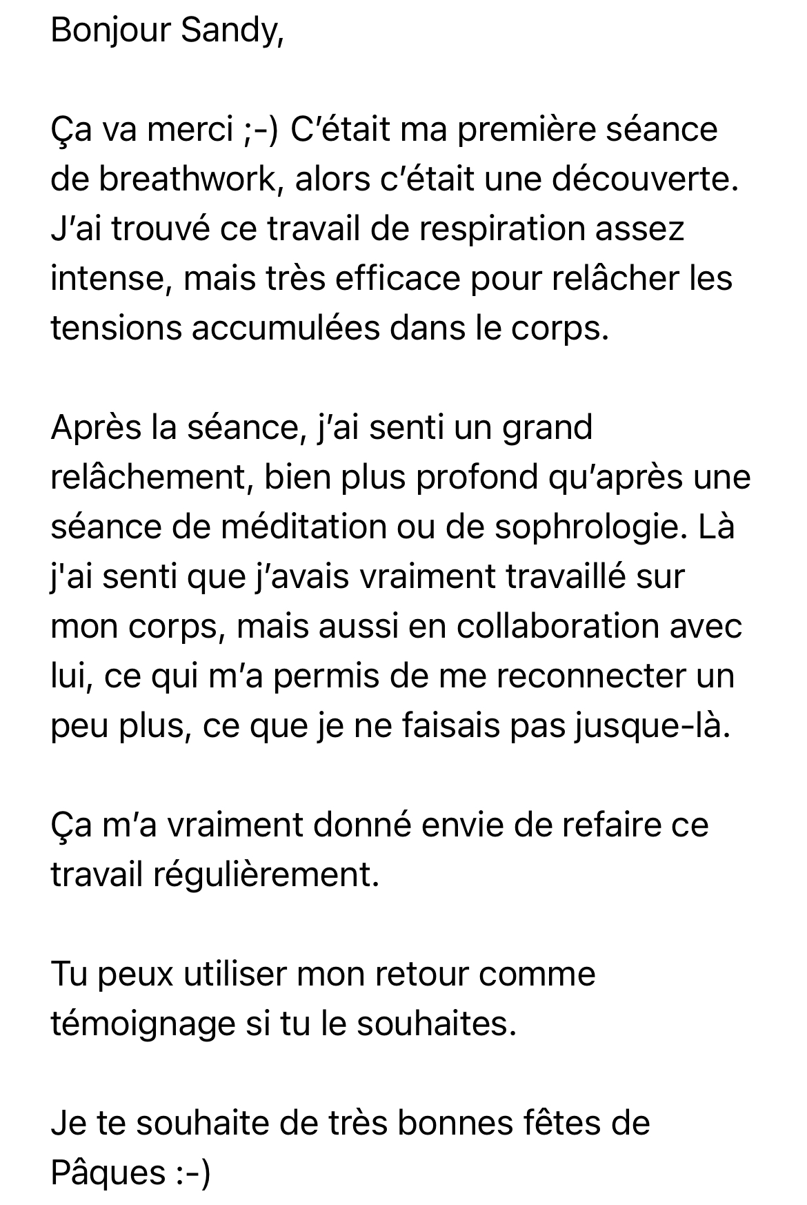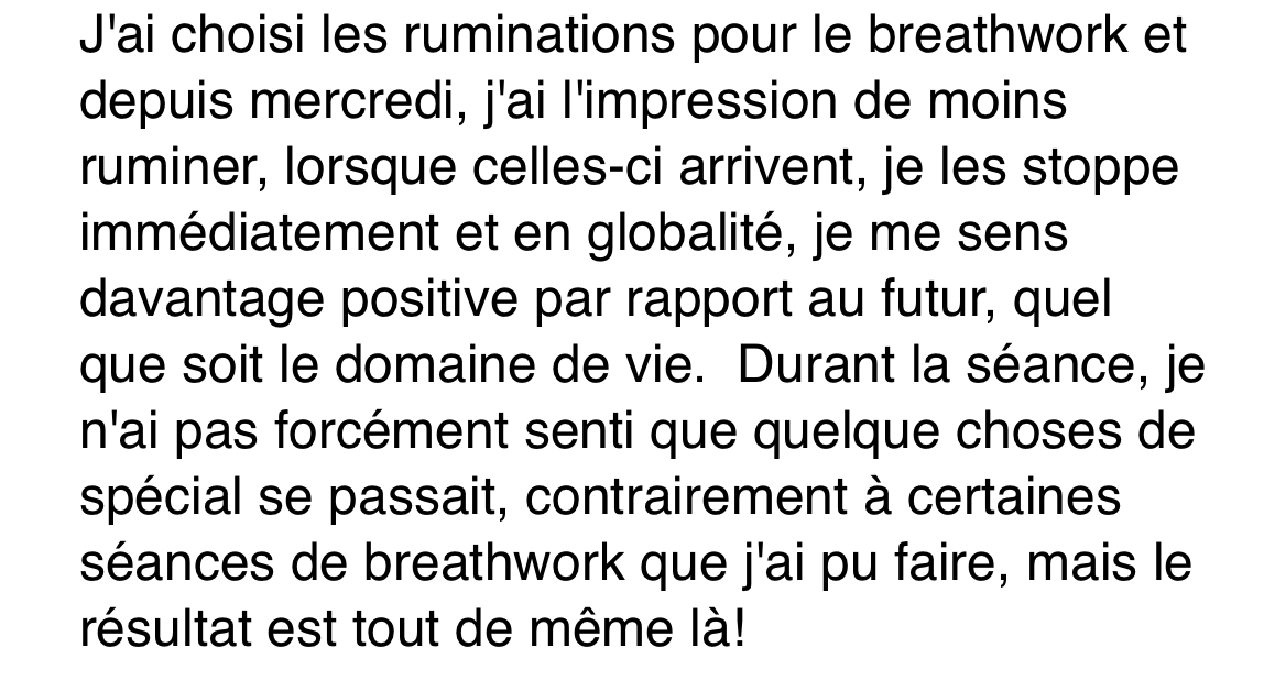 La séance de breathwork (avec le bon dosage!) est aussi un très entrainement pour ton système nerveux car il t’apprends à rester connecter à tes sensations corporelles dans des moments plus stressants et intenses sans pour autant être submergé.